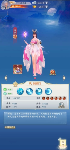 她是中国上古神话里的仙女,在民间传说中,她偷吃了丈夫羿从女娲娘娘处求得的不死药,而后飞升至月宫。