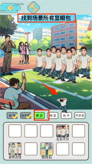 2、通过下方的各种指令,摘出军训中不一样的显眼包。