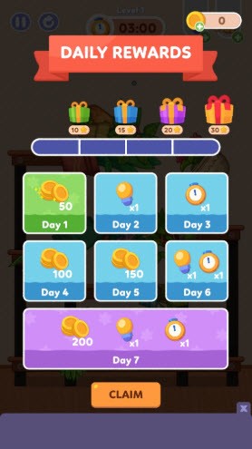 1、玩家进入游戏后,点击界面下方的“claim”,就能免费领取当天签到的金币。