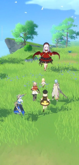 1. 该游戏以竖屏放置的形式展开冒险,具备自动战斗与探索功能,玩家能够组建自己的队伍,在充满治愈氛围的二次元世界中开启冒险之旅。