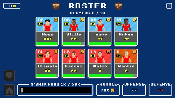 整体游戏风格为像素复古风,为你增添更多乐趣与惊喜内容。在这里,你能见证自己培养的球员不断成长,尽情书写属于自己的球员传奇。而且,通过心理辅导与团队活动,还能提升专注力。