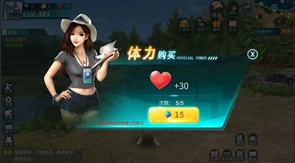 1. 上鱼拍照:成功溜鱼上鱼后,即可点击拍照。每天可分享两次,分享到朋友圈能获得10点体力,分享给好友可获得5点体力(注意仅有两次分享机会哦)。