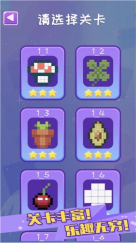 当所有方块都被消除,就能获取下方的像素图。每一关的像素图都有所不同,快来瞧瞧你能收集到多少像素图吧。