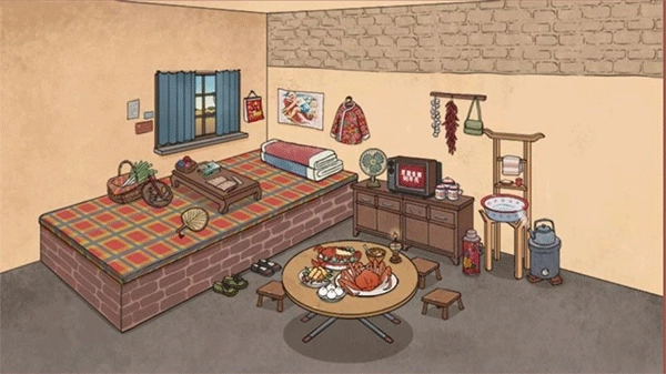 1. 这感觉仿佛回到了80年代呀,这个小房间很有韵味。咱们得点击下方的箱子,把家具拿出来。