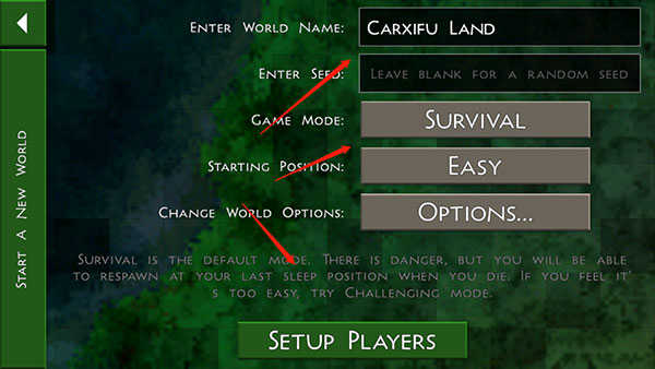 3、世界名称尽量别用中文,直接输入数字,此为游戏模式,此处有注释。
