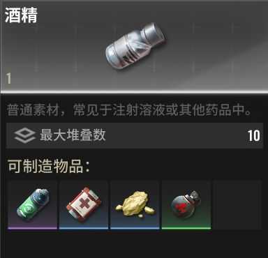 漫步于红滩战场,受伤情况在所难免。要是能够自行生产药物给自己医治,那可就太惬意啦!局内极易拾取的酒精,能够用来制作急救包与再生药剂,性价比超高,每位砖友都不容错过。
