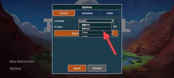 3、向下滑动至底部,寻找到“简体中文”这一选项,接着点击“Apply”进行应用。