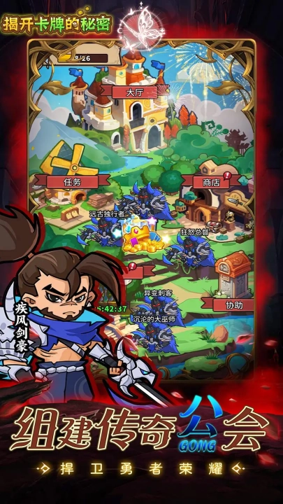 《揭开卡牌的秘密》是一款融合策略与养成元素的卡牌游戏。玩家在游戏里可以体验“大富翁开箱子”的趣味玩法——通过掷骰子前进,解锁各类神秘奖励;还能招募索尔、宙斯等神话英灵来搭建强力阵容,或是邂逅梦精灵、花精灵这类奇幻精灵,借助它们的独特属性为冒险添砖加瓦。战斗环节采用回合制策略模式,酷炫的伤害数字直观呈现出激烈的对决场面。此外,玩家能创建或加入公会,在大厅、任务、商店等多样场景中,与公会成员携手作战,守护勇者的荣耀,一同探寻卡牌世界里的无尽奥秘。