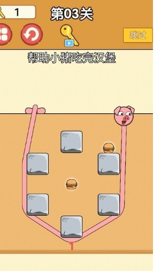 3,每个动物对应的过关机制各不相同,例如小狗需要成功吃到骨头,小蛇得想办法吃到草莓,小猪则要吃到汉堡才能顺利过关。