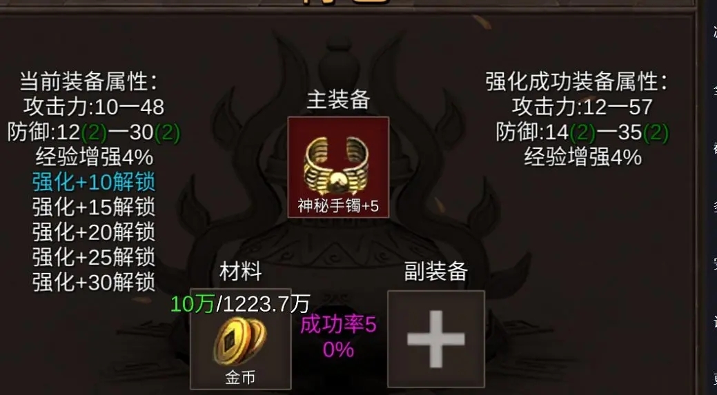 目前强化提升的战力加成是最高的,相同的装备能够进行强化操作,强化过程中存在主武器破损消失的概率,不过其带来的强大加成常常促使众多玩家选择冒险尝试。
