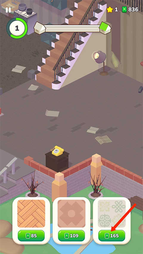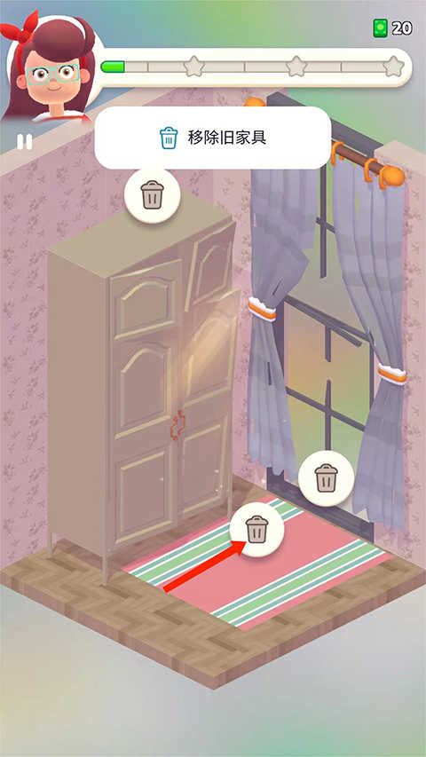 接下来点击【垃圾桶】图标,把旧家具清理掉,为新装修留出空间。