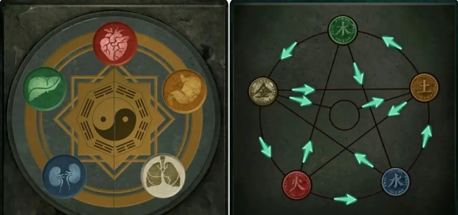 7、驱散黑雾后,观察祭坛中间的提示(五行所在方位),并点击上方的铜鼎,按照金木火→木火土水→木火土水→金土水金→水金水→木火金水→木火金水→木火土的顺序,完成机关。最后打开暗道,进入下一章。