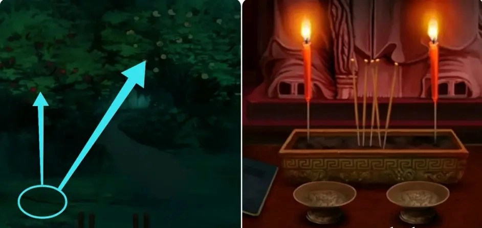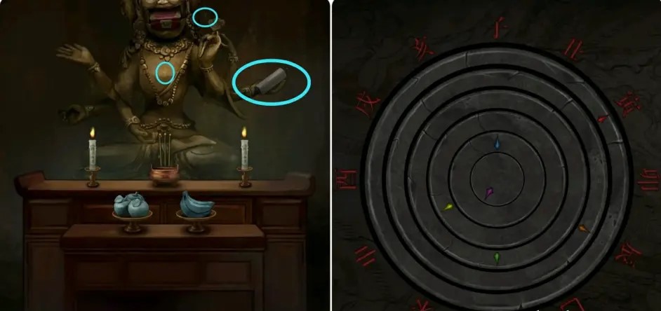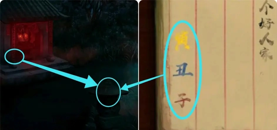 接下来,你来到土地庙前,查看了供桌上的许愿簿,留意到寅丑子的提示。随后,你点击土地庙前方的石灯笼,了上面的机关,打开供桌的暗格,取走了引魂符。