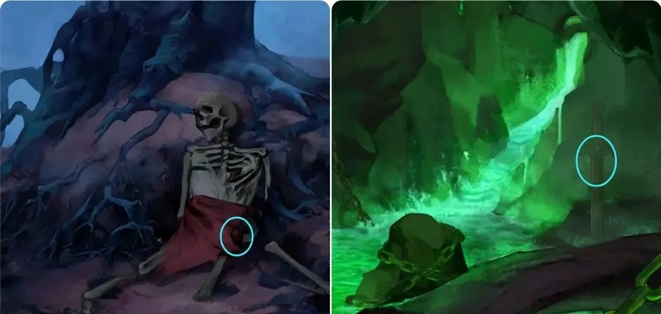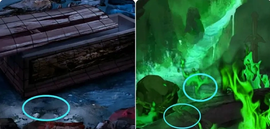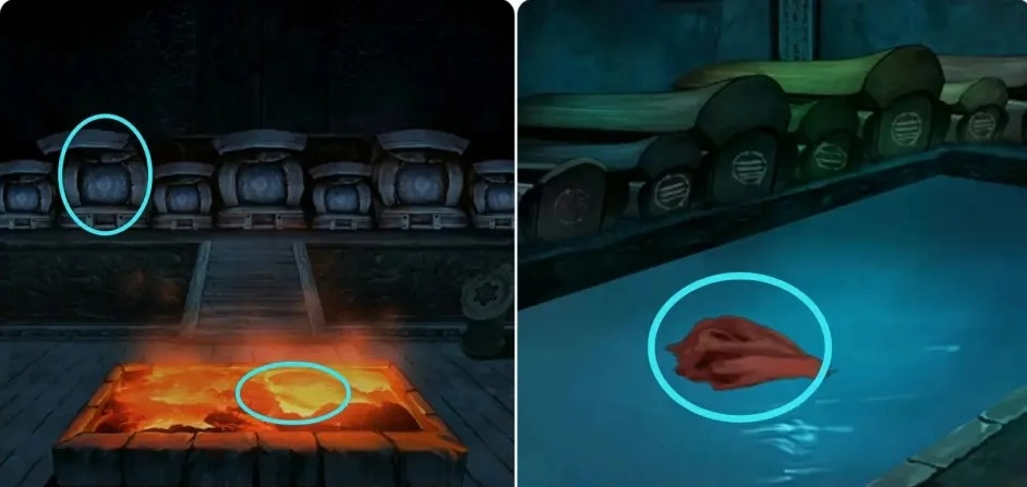 5、进入右侧墓室,打开左边第二个棺材,取出长棍和一截破布。将破布放入左侧墓室的水池中,然后用长棍将其缠绕。完成后,回到右侧墓室,将长棍放入火池中,取出蓝色钥匙。