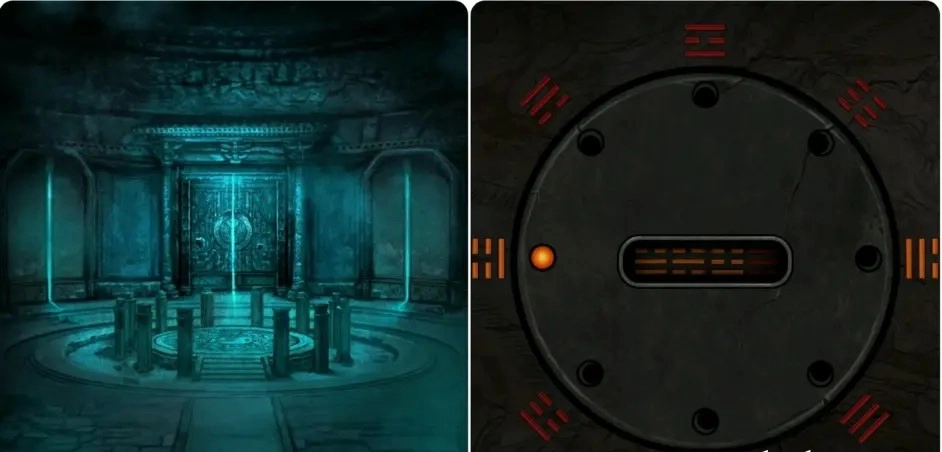 1、在墓穴的中心,你需要按照阵盘中的提示等待红点到达对应位置,然后点击外围的卦才能打开中间的墓门。