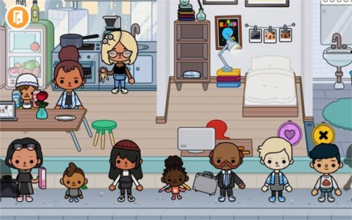 也可以点击左上角的“退出房间”按钮,回到自己的家。家里同样有不少小朋友,点击任意人物或物品就能移动。