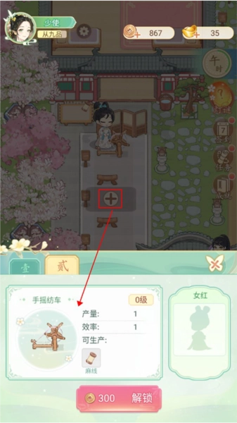 等待纺织机建设完毕后就可以安排采女进行工作啦。