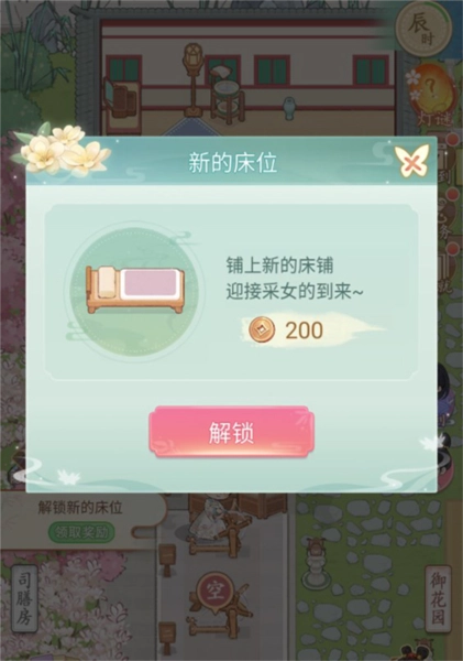 玩家点击床铺区域的加号,就能新建一个床铺,以此迎接采女的到来。