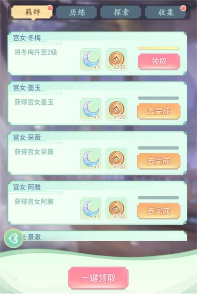 玩家可通过选拔宫女、提升宫女等级、解锁故事羁绊等方式解锁羁绊成就,并领取丰厚的成就奖励。