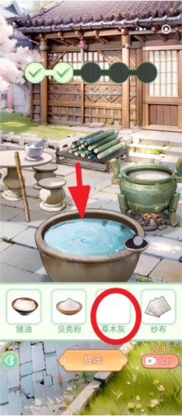 最后将猪油和贝壳粉依次倒入水中搅拌