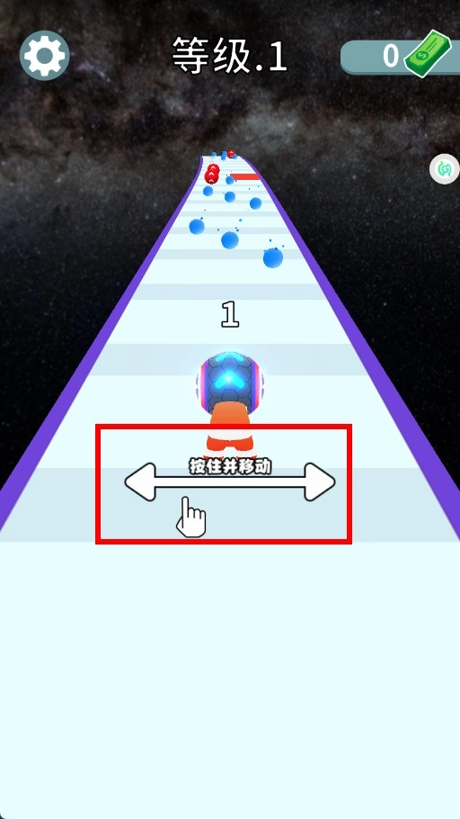 进入关卡后,按住屏幕并滑动来操控角色推动小球,让它沿着轨道前进,开启这段冒险之旅。