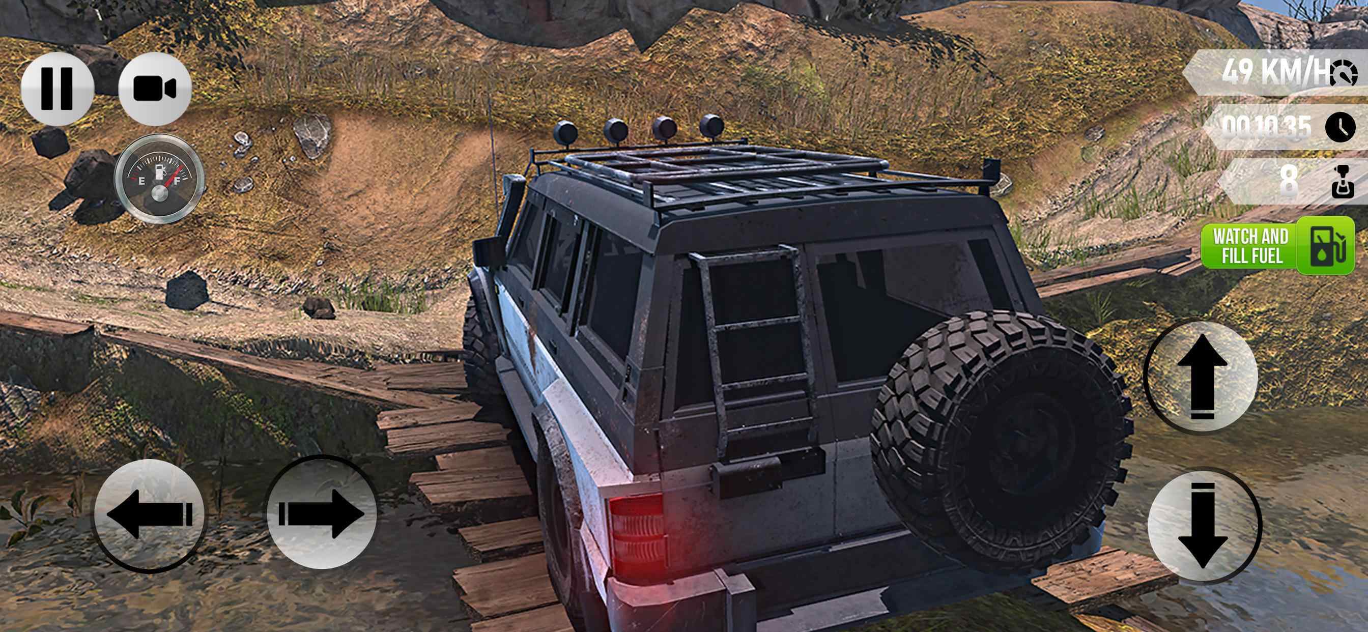 在泥泞越野模拟器中,只需点击虚拟摇杆,就能操控汽车方向,让车辆顺利前行。