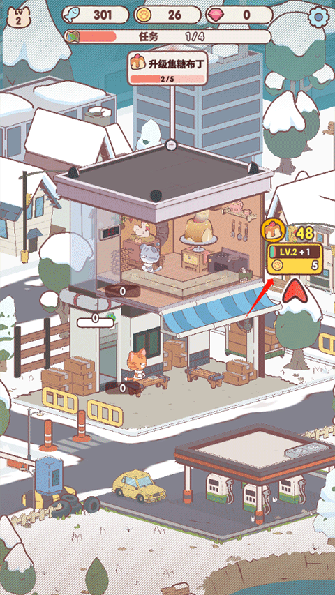 然后点击卡车旁的tap,把甜品搬上车卖掉,以此赚取资金