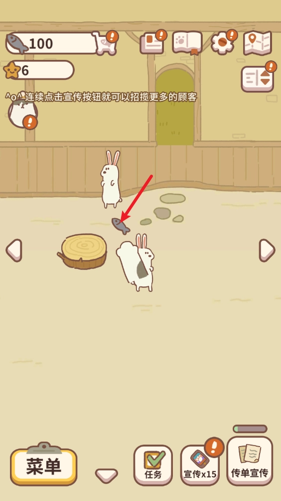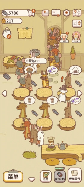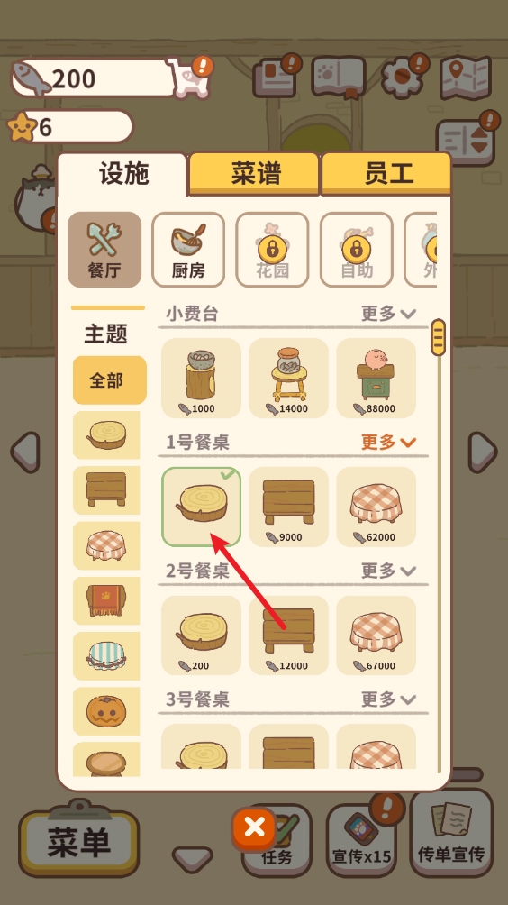 当你收集到足量的小鱼干后,点击左下角的菜单就能添加更多的桌子了。