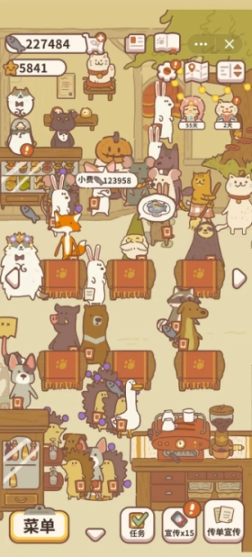 游戏里有不少性格各异的可爱小动物,你能聘请它们当员工,和它们增进感情,提高餐厅的运营效率!
