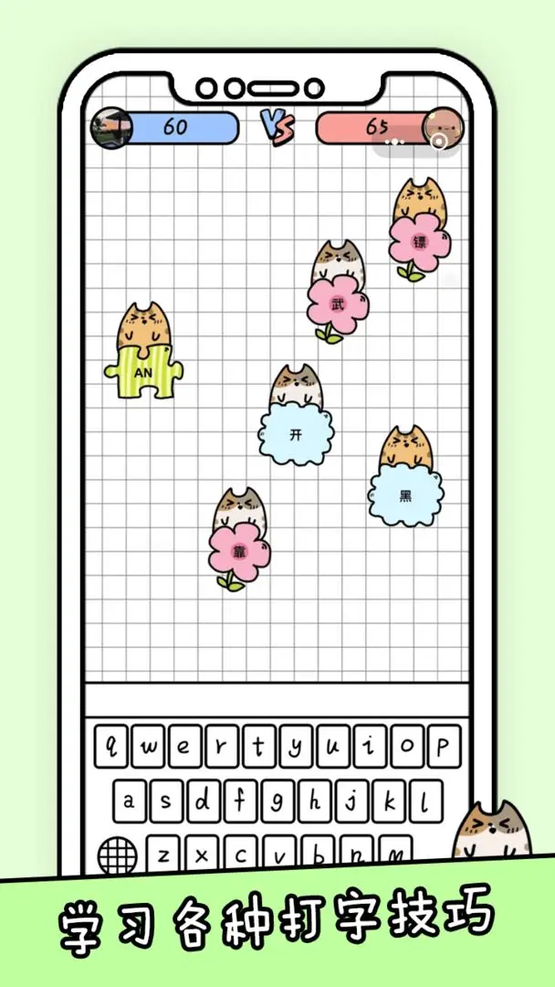 这款游戏兼具休闲与益智属性,适合不同类型的玩家体验。在轻松的游戏过程中,玩家能在不知不觉间提升打字的速度与准确性。游戏采用卡通风格的画面设计,界面清新可爱,搭配上轻松舒缓的背景音乐,为玩家营造出愉悦的游戏氛围。