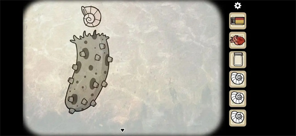 接下来要选择上面的海参,直接快速点击被黑圈围住的“触角”。此时海参会爆开,这样就能自然获得一个螺壳了。