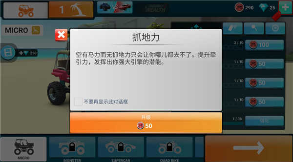 要是觉得赛车性能欠佳,不妨对其速度、抓地力、稳定性、轮胎等方面进行升级,以此来提升赛车的各项属性。