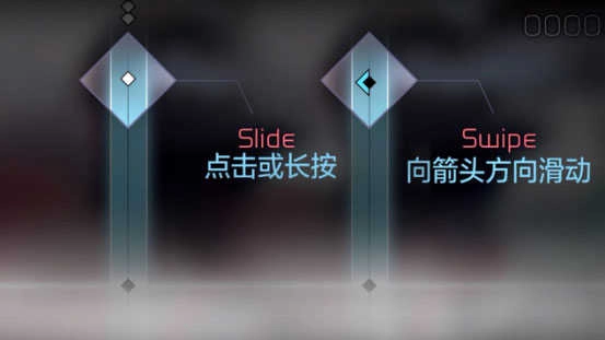 长条形的音符上一般带有白色横条,玩家需按住音符,并顺着白条所指的方向滑动。