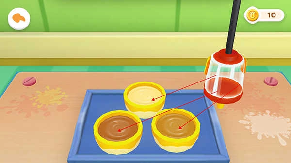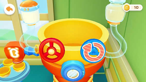 搅拌完成后,用户只需点击屏幕中央的开关图标,就能取出搅拌均匀的冰淇淋;游戏内共有三个碗,用户可自主选择将冰淇淋倒入任意一个碗中。