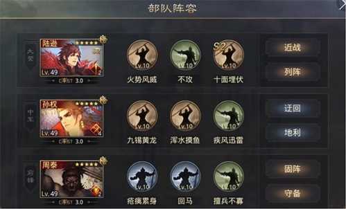 大营陆逊携带【不攻】【十面埋伏】,是全队的主要输出核心。