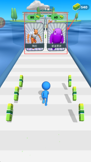 在跑酷过程中要优先收集金币,等攒够一定数量后就去兑换强力卡牌,这样能为之后和对手的对决提前储备好战力。