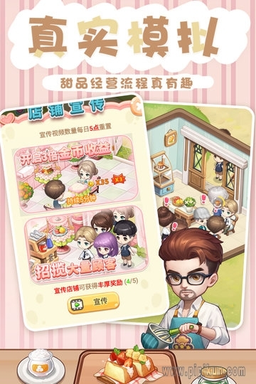 你可以持续经营自己的甜品店以吸引更多顾客,这里有多种不同口味的甜品可供制作,每一个操作都需要玩家亲自安排,能让你感受到十分真实的经营乐趣。