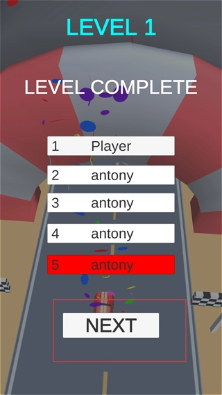 在指定赛道内驾驶,第一个冲过终点线,即可完成当前关卡的挑战。关卡完成后,游戏会展示排名信息,你可以查看自己的游戏成绩。