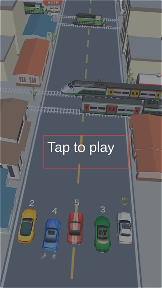 玩家进入游戏初始界面后,点击“Tap to play”开始游戏,随即进入出租车与火车竞赛的场景。