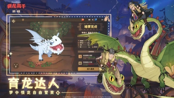 驯龙高手旅程官方服务器由环球产品与消费体验部门授权,明日世界自主研发并发行,是一款改编自电影《驯龙高手》的模拟经营育龙游戏。游戏高度还原电影中的各类细节,超萌的没牙仔、机敏的风里飞等近百种巨龙,均以电影为蓝本进行了精心还原。故事设定在维京时代,玩家将化身驯龙学院的龙骑手,与小嗝嗝和他的伙伴们一起踏上冒险之旅,共同守护博克岛。