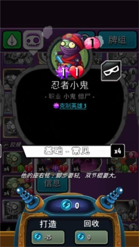 疯狂系卡牌在战斗中主要负责提升输出能力,可选的有盗墓僵尸、僵尸好伙伴和太空忍者这几张。尽管可选范围不算大,但它们的实战效果相当强劲:盗墓僵尸能凭借技能规避敌方伤害,僵尸好伙伴可强化周围队友,太空忍者则能对植物英雄发动偷袭。