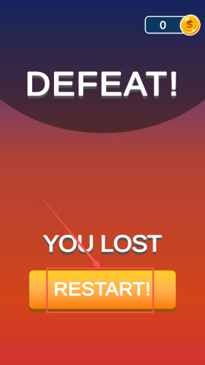 4、失败重开:当界面显示“DEFEAT YOU LOST RESTART”时,点击“RESTART”按钮即可重新开启挑战。