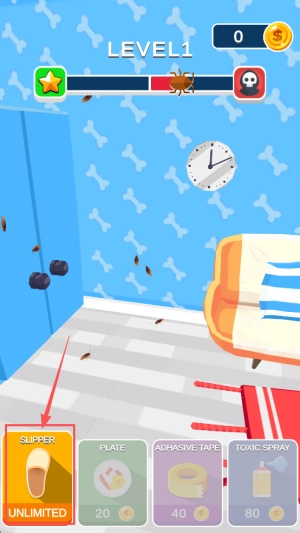 4、解锁关卡进阶:通过获得的奖励解锁更多关卡,迎接不同场景下的蟑螂入侵挑战,在持续灭蟑的过程中体验闯关的乐趣。