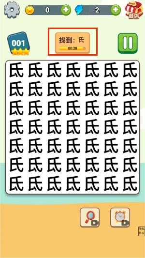 2、在诸多相近的汉字里认真分辨,找出潜藏在其中的特定“氏”字符号。