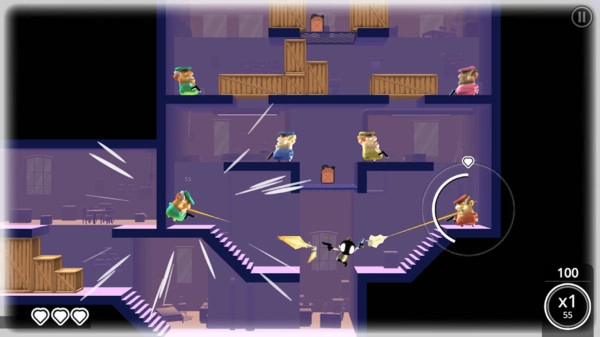 带你开启一场香蕉主题的刺激冒险!无论是跨上摩托风驰电掣,还是踏上滑板灵活穿梭,都能在闪转腾挪间倾泻火力,挑战37道高难度动作关卡。你既可以用精心编排的空中特技动作斩获高分,也能在“血流成河”模式里试炼自己的生存能力。