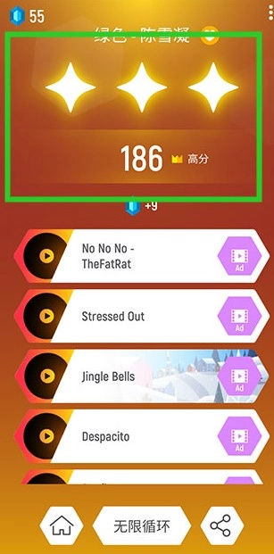挑战成功后,系统会依据玩家的表现展示得分和奖励。此时,玩家既可以选择继续挑战当前歌曲,也能切换其他歌曲开启新的体验。