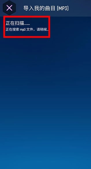 在扫描页面,游戏会自动检测设备里的音乐文件。等扫描结束后,系统就会展示所有可播放的曲目列表。