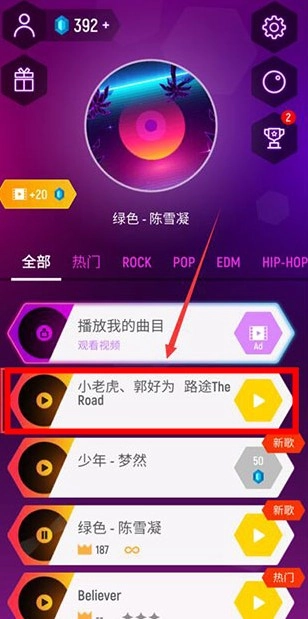 1、选择歌曲开始挑战
