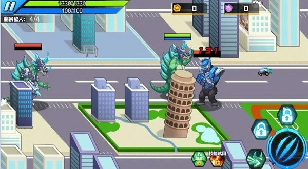 3、大量的怪兽敌人,需要逐个清除,还城市一片安宁