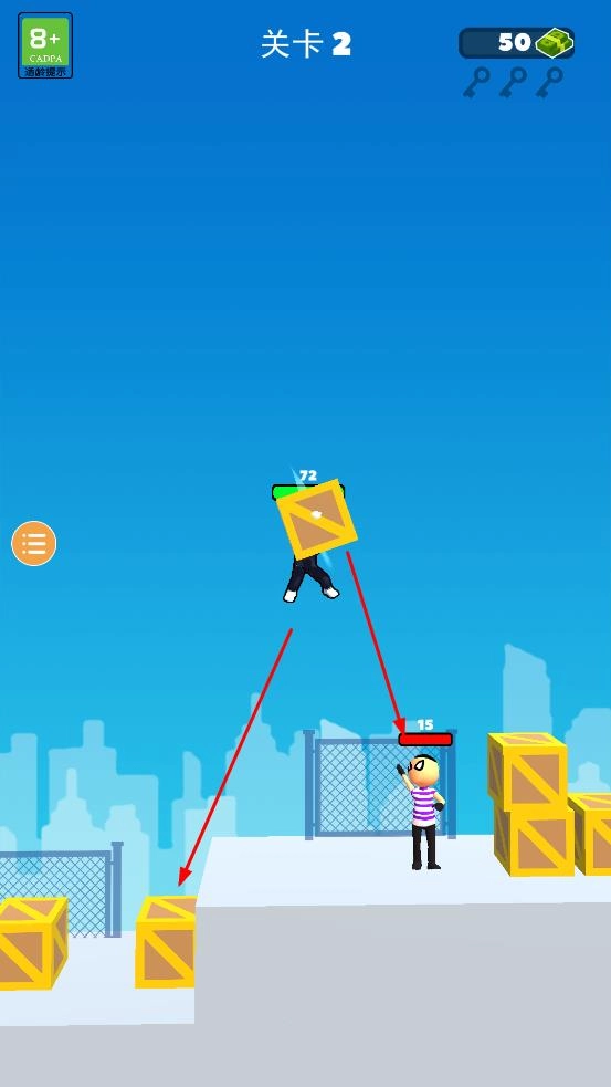 2、利用场景里的箱子这类元素来攻击敌人,注意观察敌人的血量,提前规划好攻击策略,打败敌人后就能获得相应奖励。